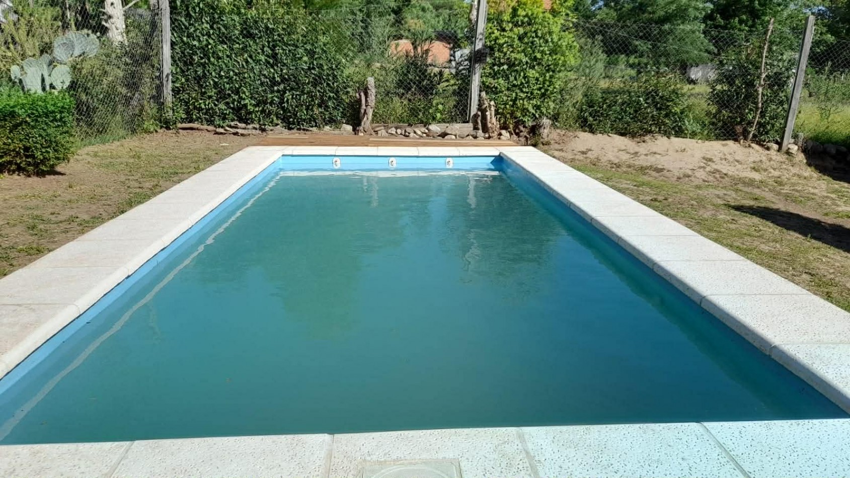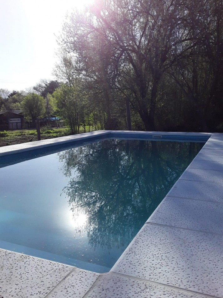 Piscina de fibra de 6,5 x 3 m con equipo completo